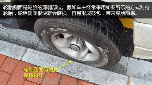 蹭胎壁,很多时候是因为开车不小心、车感不足导致的。但轮胎侧面属于轮胎的薄弱部位,磨损严重的话也会造成轮胎鼓包,带来爆胎的隐患。因此,车主在靠边停车的时候,应该多留心车辆与路肩的距离,避免蹭胎壁。