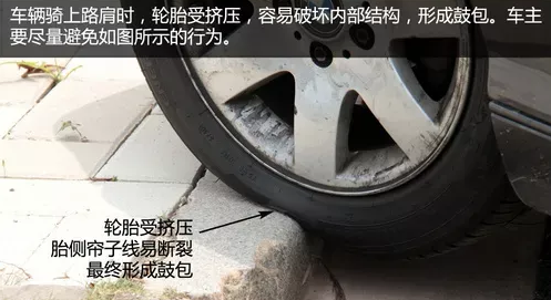 原地打方向会令轮胎的磨损集中在同一个接触面上,造成轮胎局部严重磨损,缩短使用寿命。因此,车主应避免原地打方向,而应该在轮胎滚动时打方向,这样的话,地面给轮胎带来的才是全方位且均匀的正常磨损。车辆骑上路肩时,轮胎受挤压,容易破坏内部结构,形成鼓包。路面的坑洞同样要避开。当轮胎碾过坑洞时,轮胎同样会受到挤压。坑洞越大、车速越高,轮胎受到的挤压力度也越大,这样也会导致轮胎出现鼓包。