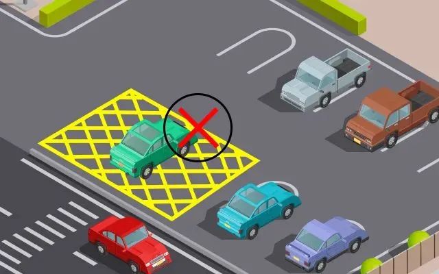 黄色网格线,用于标示禁止以任何原因停车的区域,一般用于易发生临时停车造成交通堵塞的交叉道路、出入口等位置。