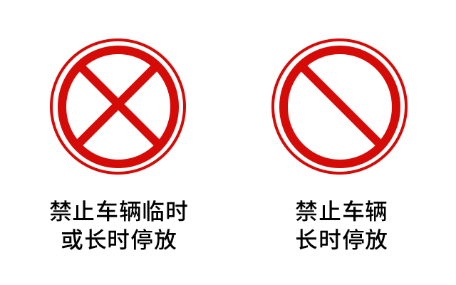 对于“禁止车辆临时停放”和“禁止车辆长时间停放”,这有两个标志想必广大车主都很熟悉,前者意味着一秒都不能停,后者表示可以临时停车。